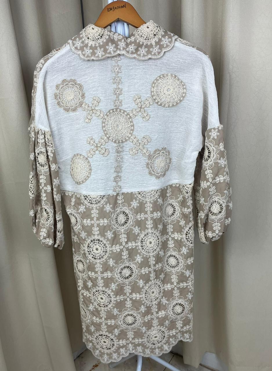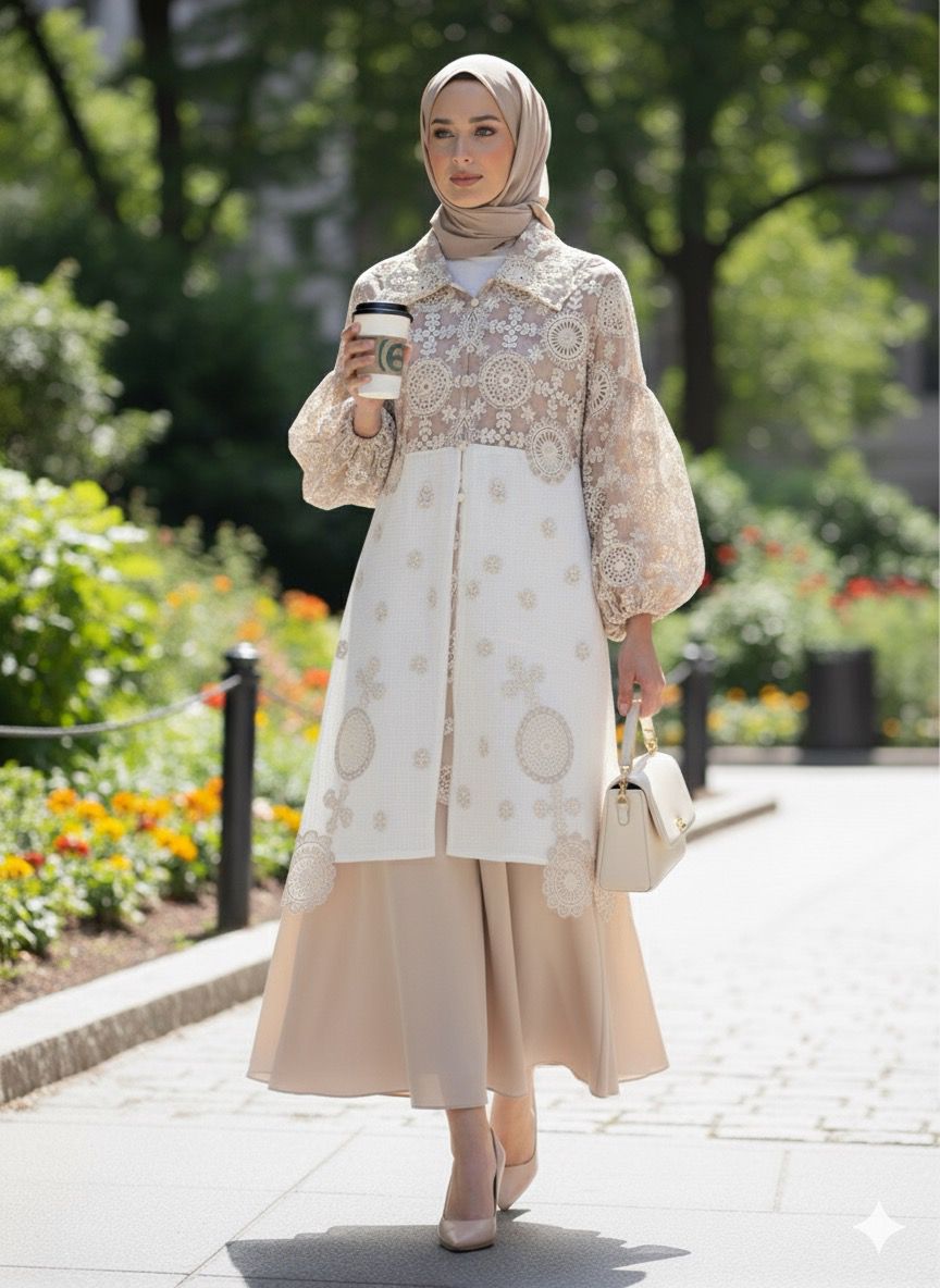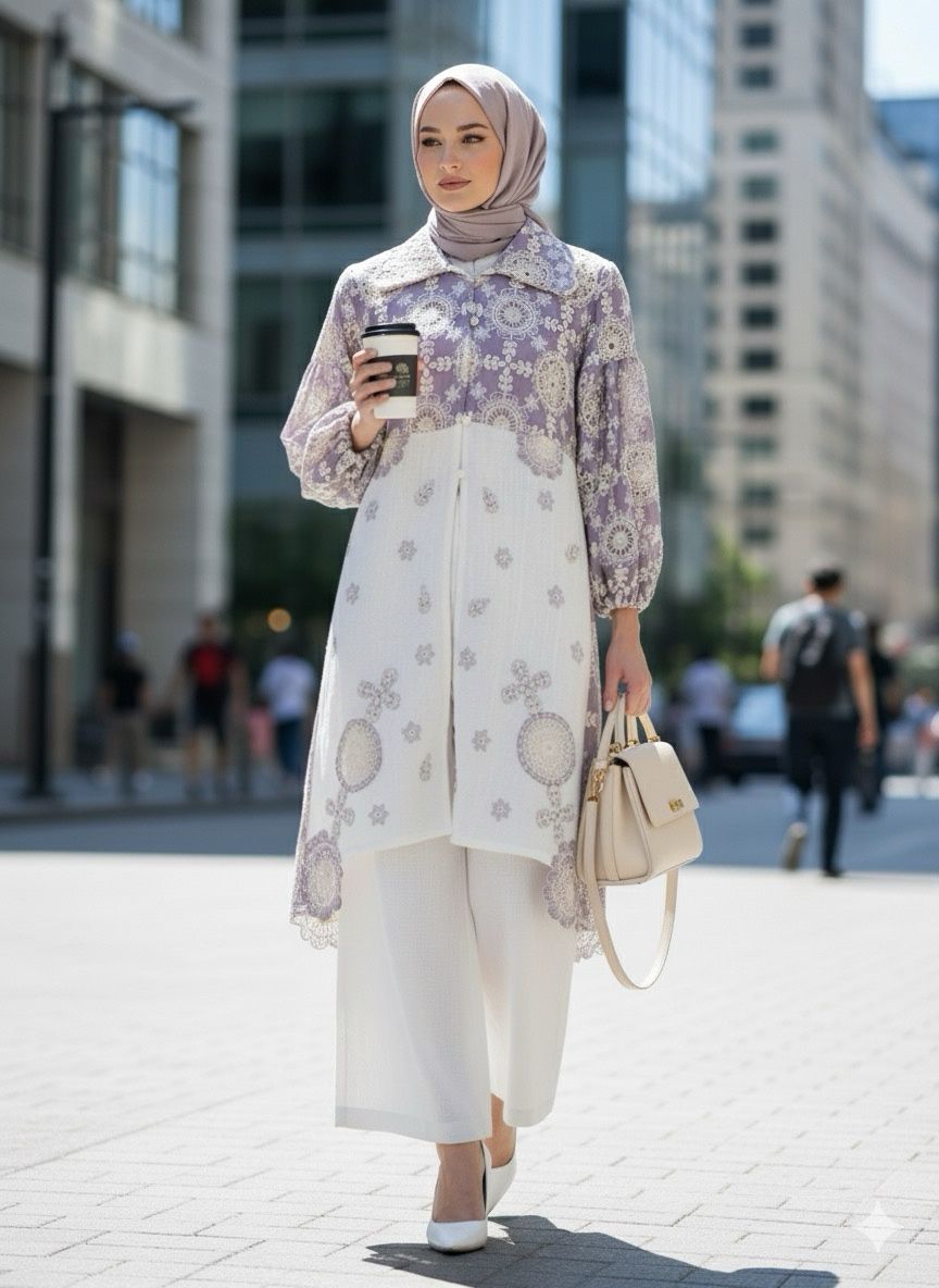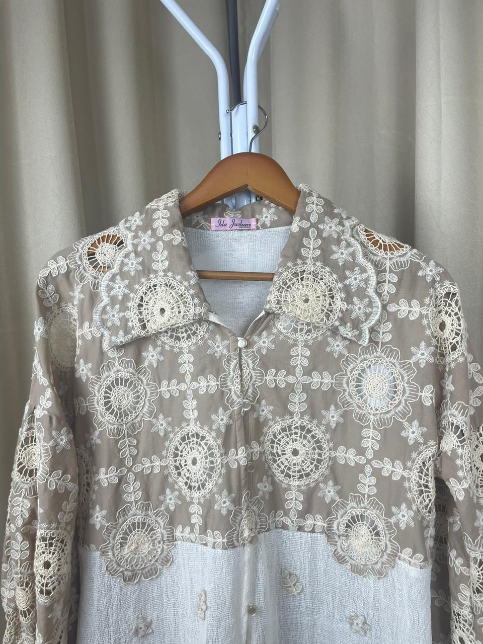 Desain elegan Tenun Tope (wastra Jeneponto) mix Katun Bordir dengan kombinasi dan potongan two-tone yang unik (Ungu – Putih BW dan Cream – Putih BW. Bagian lengan balon (puffy sleeve) menambah sentuhan modern dan feminin. Wajib punya untuk koleksi modest wear Anda!😍😍