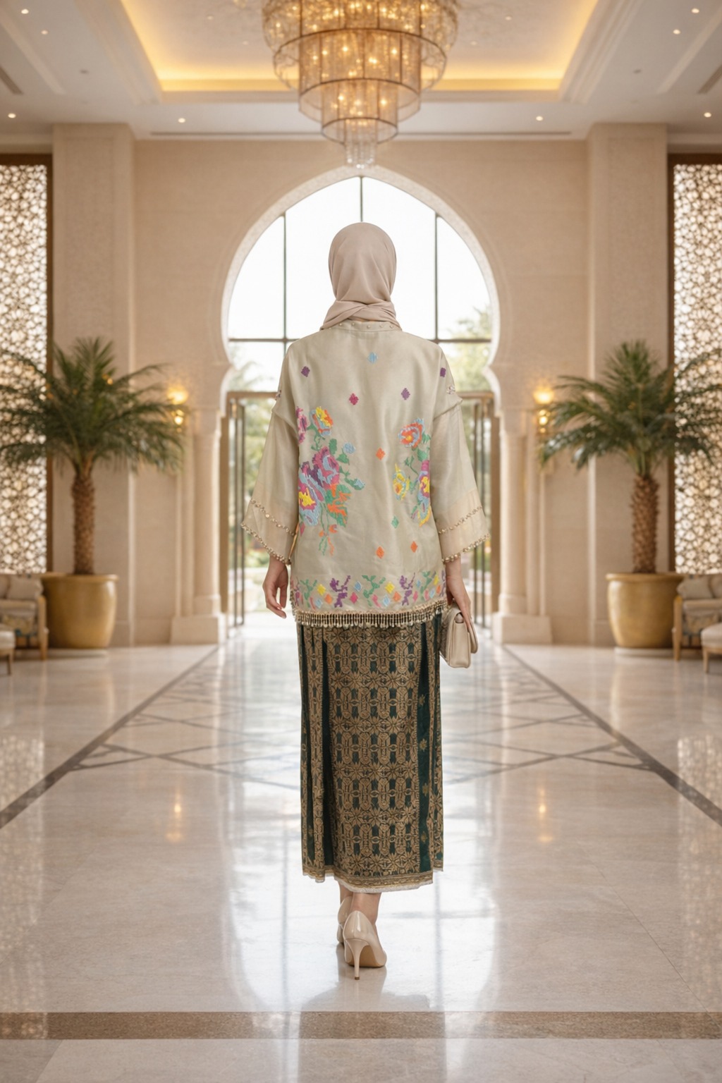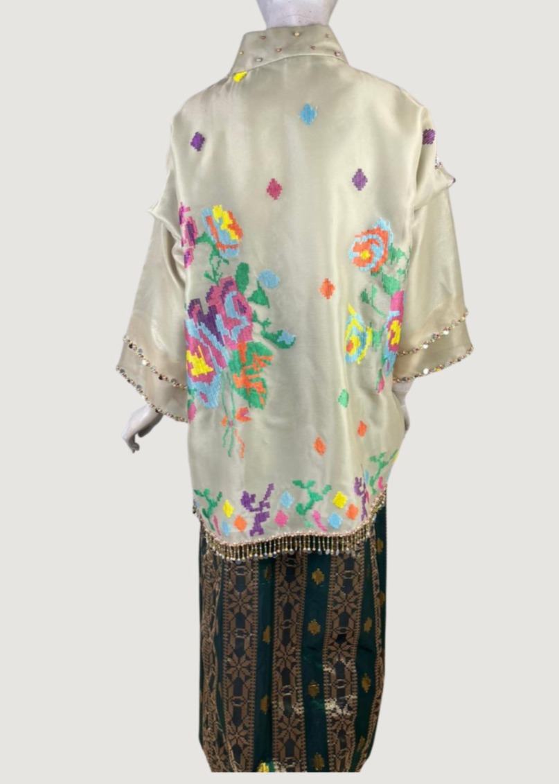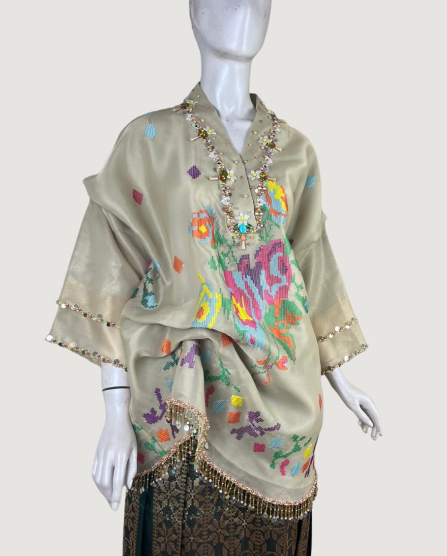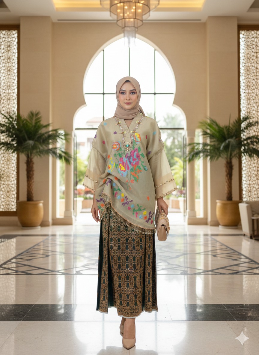 Hadirkan kemewahan tradisi dalam balutan modern. Perpaduan sempurna bahan Organza Premium dengan sentuhan Bordir Motif Lagosi yang khas, dipermanis dengan detail Payet Elegan yang memberikan kilau sempurna di setiap langkah.