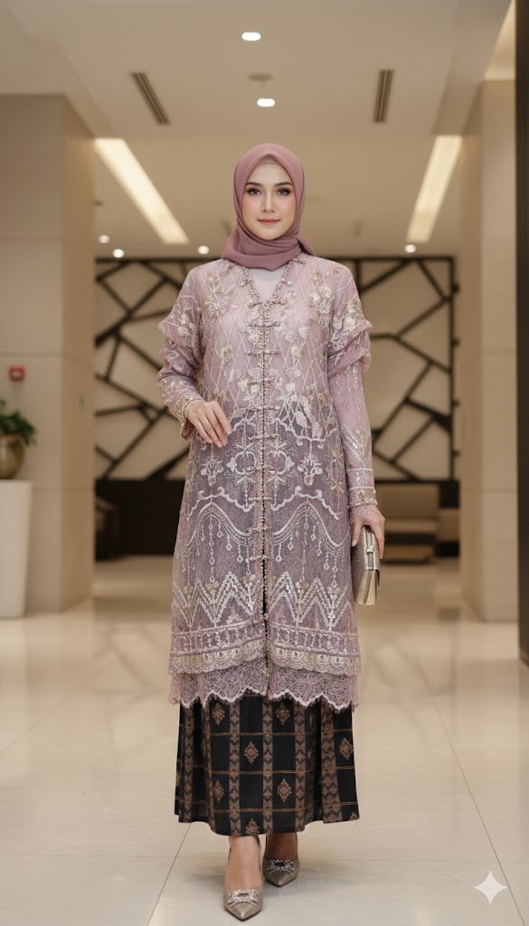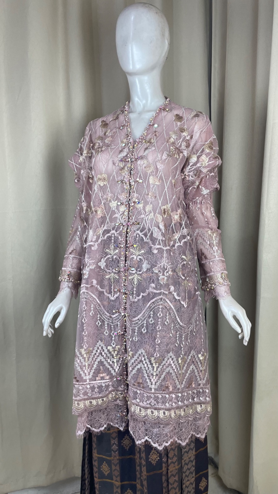 Sentuhan lace premium yang lembut bertemu dengan warna pink yang manis. Tunik ini dirancang khusus untuk kamu yang ingin tampil menonjol namun tetap bersahaja di hari istimewa. Detail payet dan pola brokatnya memberikan kesan mewah yang effortless.